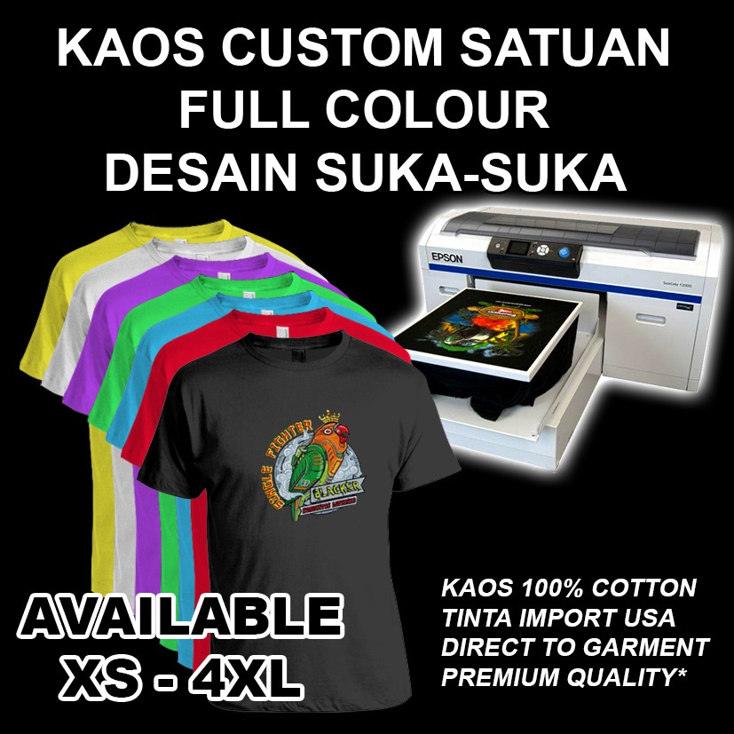 Cetak 1 Sisi Kaos Custom Satuan Desain Bebas Foto Gambar Tulisan