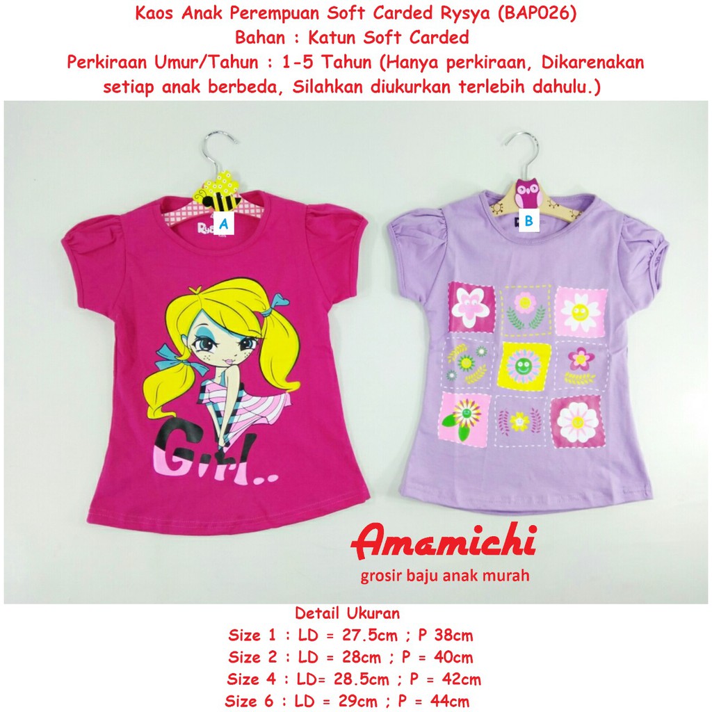 Kaos Anak Perempuan Soft Carded Rysya Murah Umur 1 5 Tahun