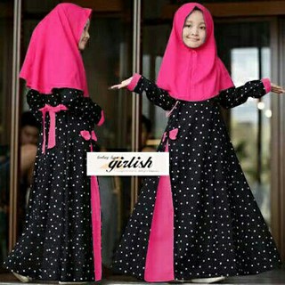 Kid Alda Polka Set Gamis Anak Maxi Dress Anak Fashion Hijab Busana Muslim Anak Perempuan Fashion Abg